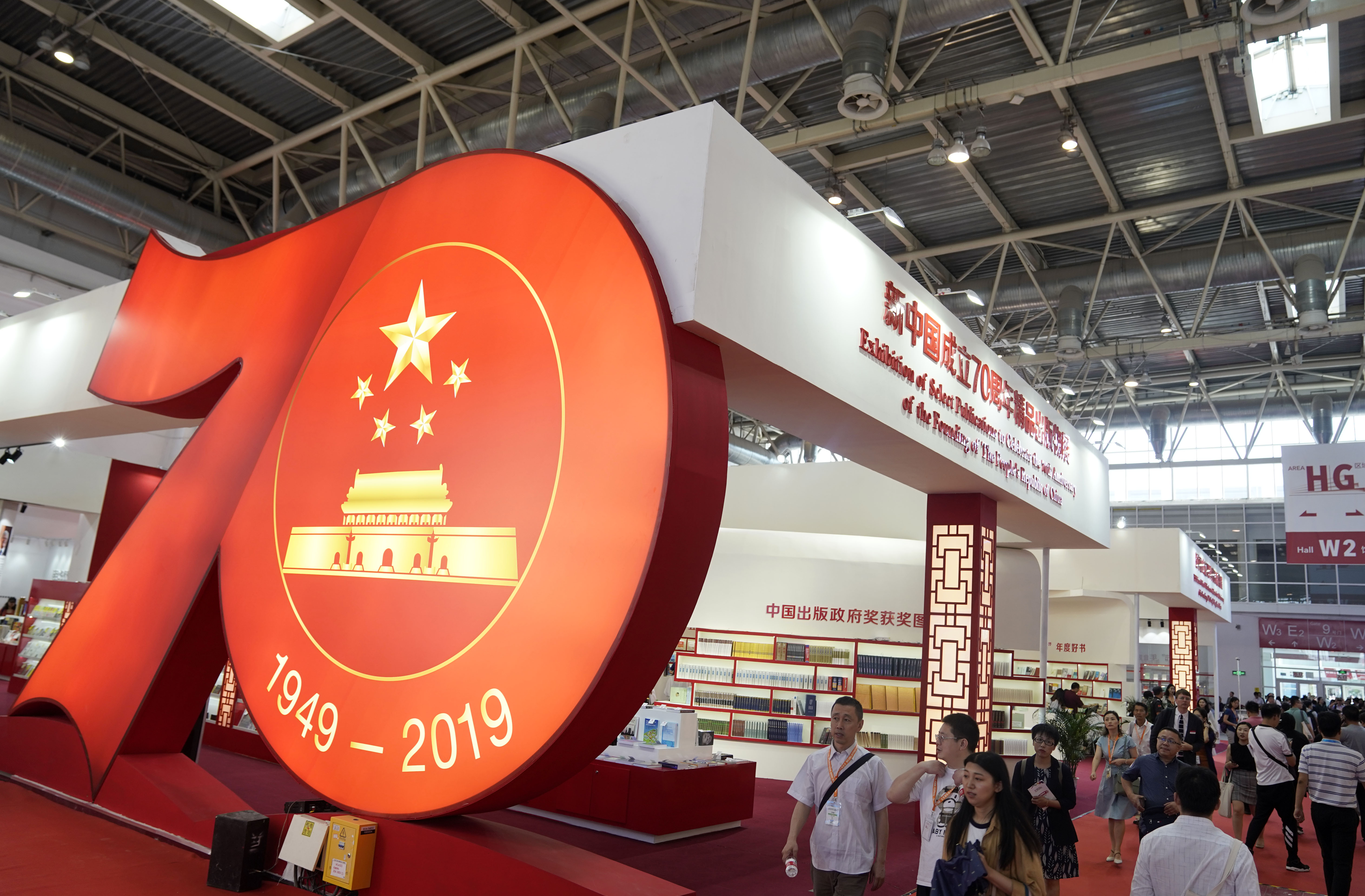 Photo taken on Aug. 21, 2019 shows the Exhibition of Select Publications to Celebrate the 70th Anniversary of the Founding of the People's Republic of China during the 26th Beijing International Book Fair in Beijing, capital of China. (Xinhua/Jin Liangkuai)