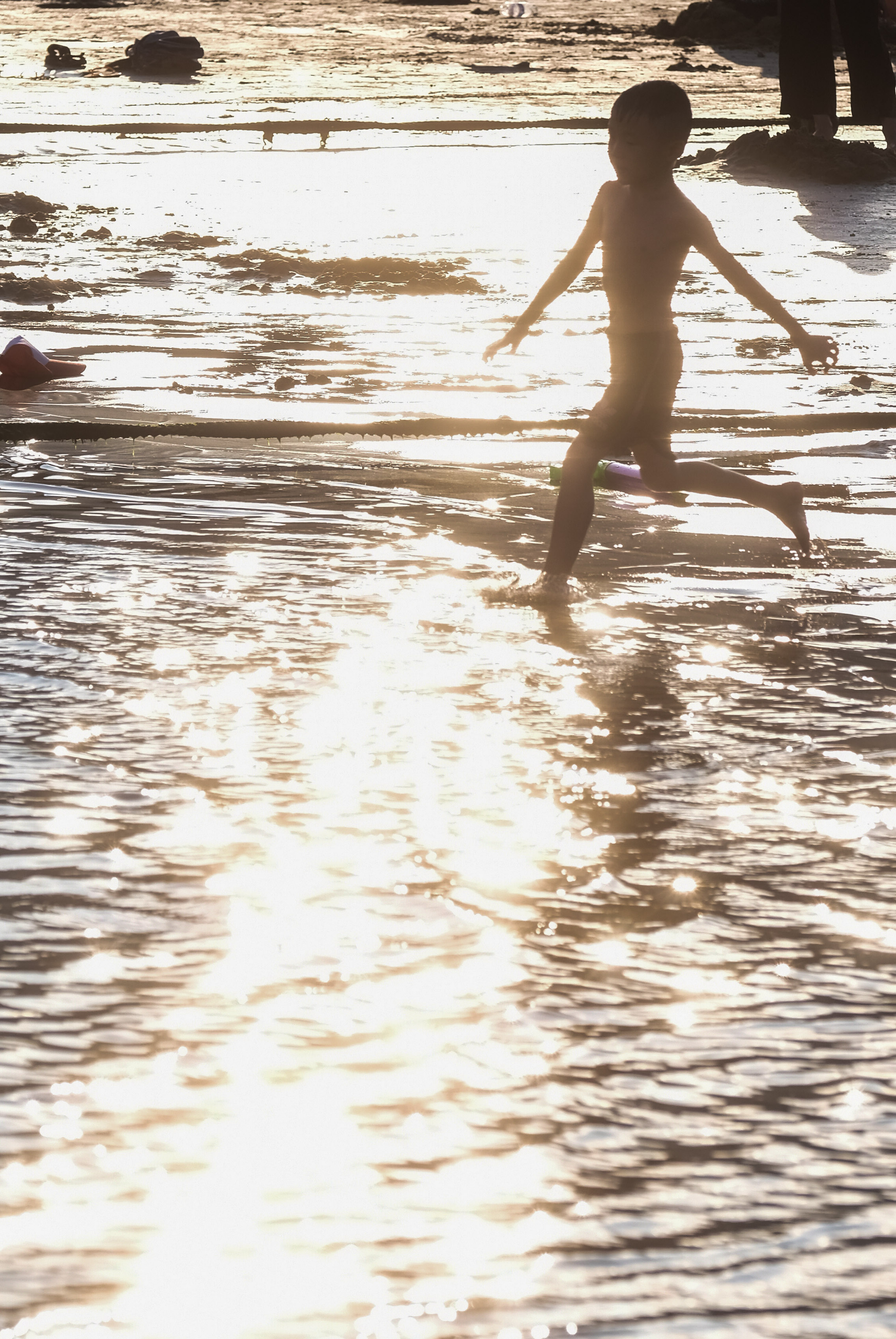 A young tourist plays on the beach at Zhujiajian scenic spot in Zhoushan City, east China's Zhejiang Province, Aug. 22, 2019. (Xinhua/Xu Yu)
