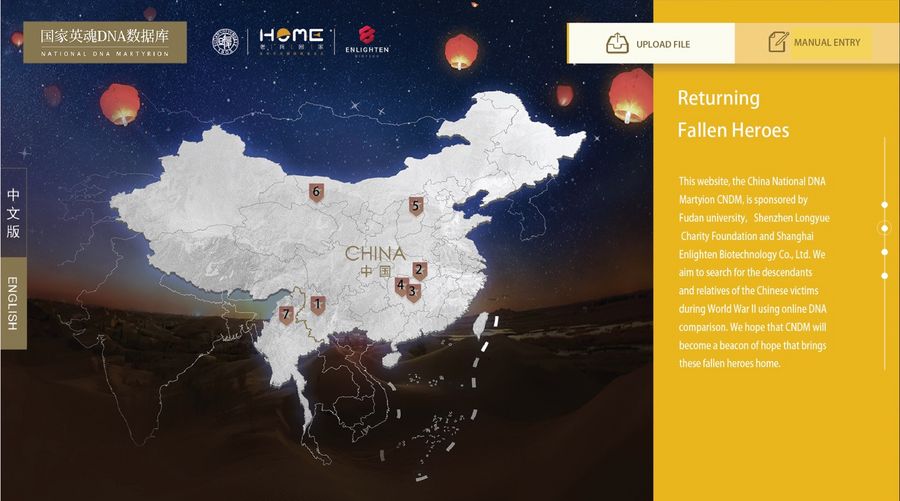 A webpage of China National DNA Martyry, a DNA database built by Fudan University researchers to help Chinese families find missing relatives. (Photo provided by Fudan University)