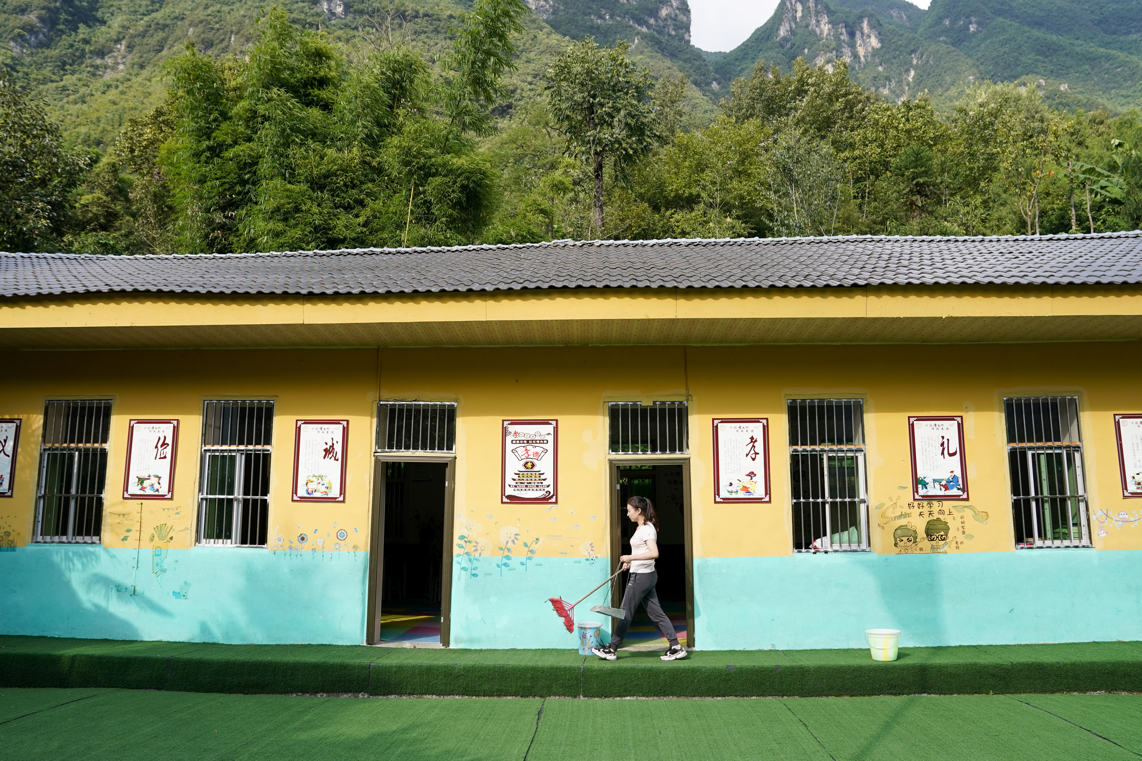 In the school where only two second-grade students and 18 preschool children study, Mu Yi and Tao Yao also do other jobs as principals, cleaners, cooks and repairwomen. Mu Yi teaches children sports, art and music and tells them about the world outside the mountains, hoping them learn more new knowledge.