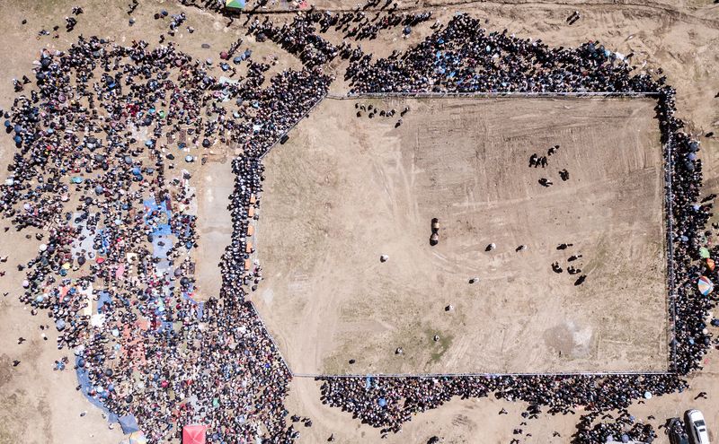 Local residents watch a bullfight at Zhexia Township, southwest China's Tibet Autonomous Region. (Xinhua/Li Xin)