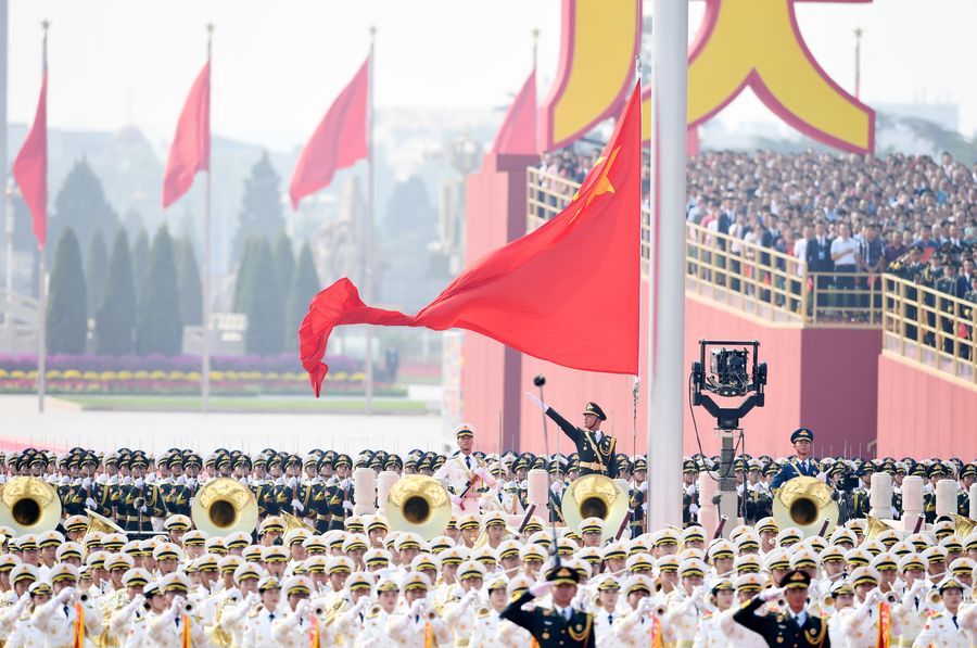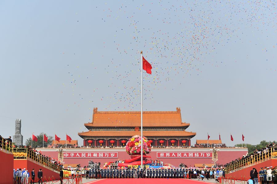 A flag-raising ceremony is held in celebration of the 70th anniversary of the founding of the People's Republic of China (PRC), at the Tian'anmen Square in Beijing, capital of China, Oct. 1, 2019. (Xinhua/Liu Dawei)