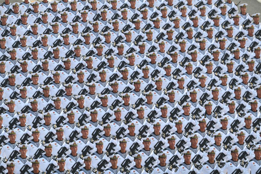A formation of the People's Liberation Army (PLA) Navy marches in a military parade celebrating the 70th anniversary of the founding of the People's Republic of China (PRC) in Beijing, capital of China, Oct. 1, 2019. (Xinhua/Cao Can)