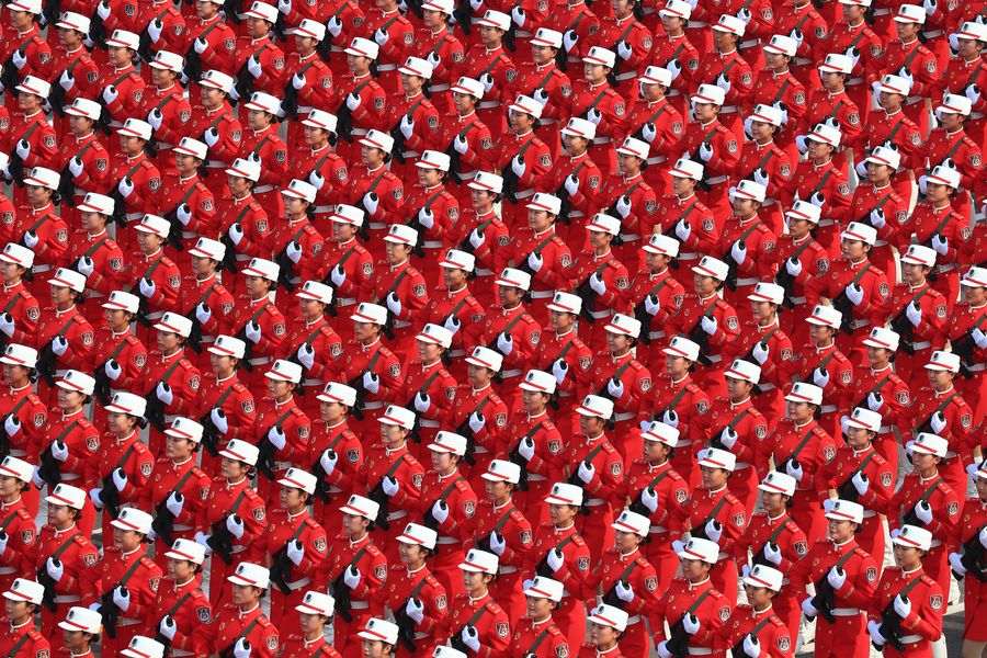 A formation of servicewomen takes part in a military parade marking the 70th anniversary of the founding of the People's Republic of China (PRC) in Beijing, capital of China, Oct. 1, 2019. (Xinhua/Zhai Jianlan)