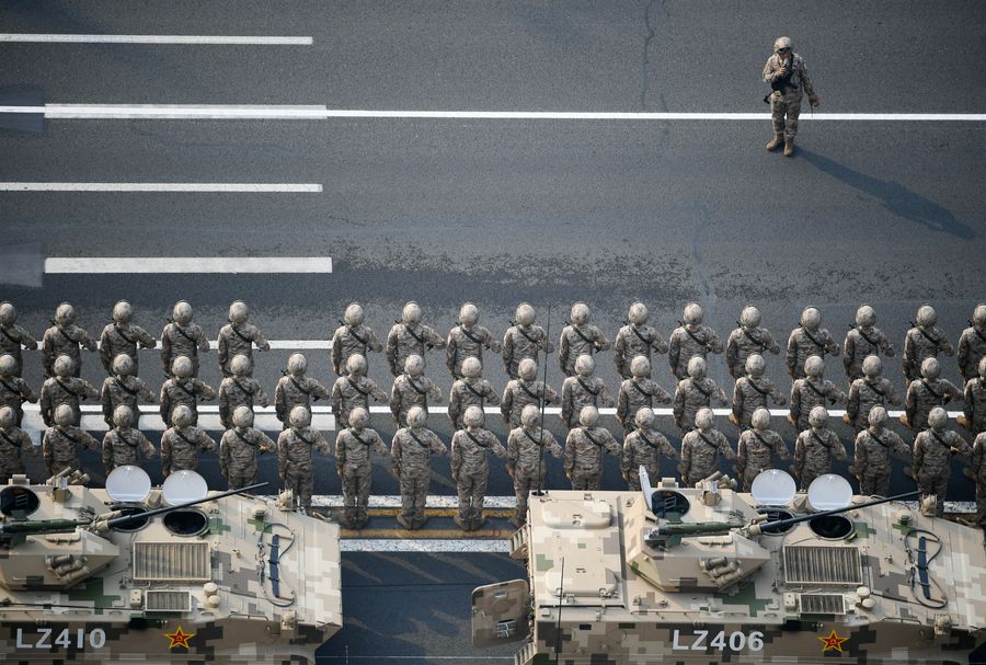 Troops take part in a military parade during the celebrations marking the 70th anniversary of the founding of the People's Republic of China (PRC), in Beijing, capital of China, Oct. 1, 2019. (Xinhua/Shen Hong)