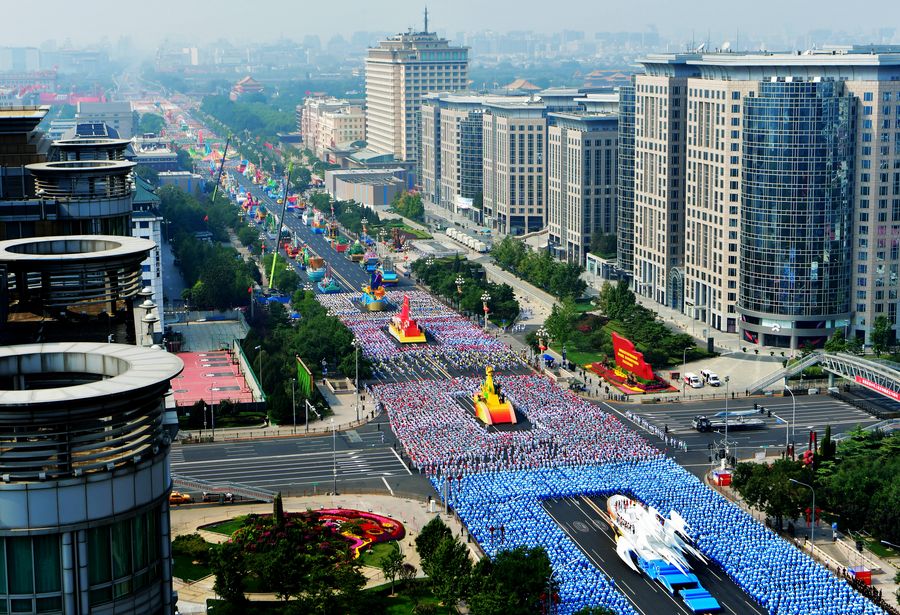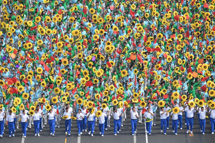 People take part in a mass pageantry celebrating the 70th anniversary of the founding of the People's Republic of China (PRC) in Beijing, capital of China, Oct. 1, 2019. (Xinhua/Yao Dawei)