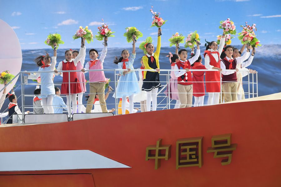 Children take part in a mass pageantry celebrating the 70th founding anniversary of the People's Republic of China (PRC) in Beijing, capital of China, Oct. 1, 2019. (Xinhua/Luo Xiaoguang)