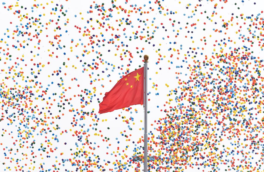 Balloons are released during the celebrations marking the 70th anniversary of the founding of the People's Republic of China (PRC) in Beijing, capital of China, Oct. 1, 2019. (Xinhua/Yin Bogu)