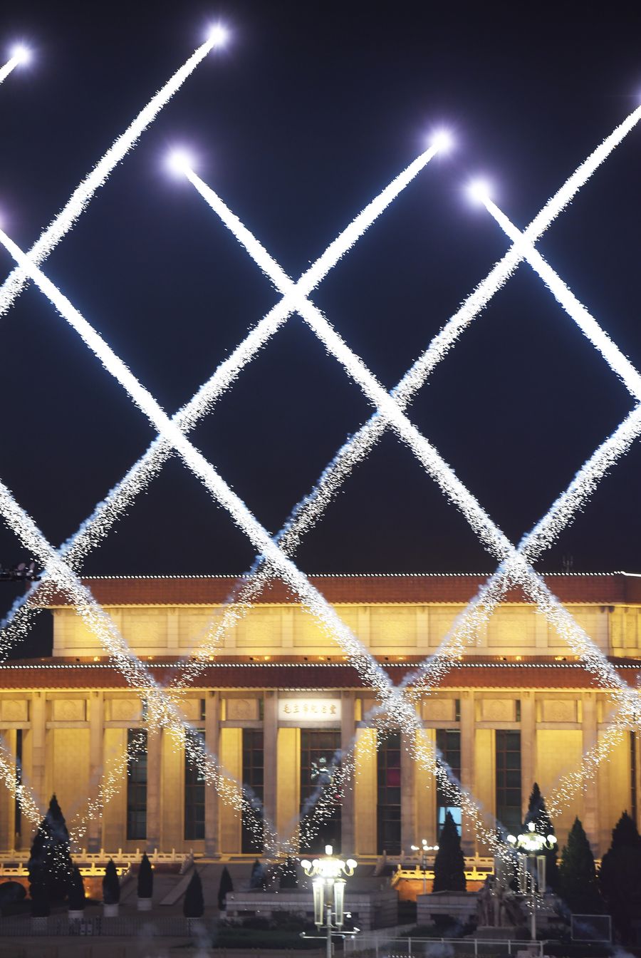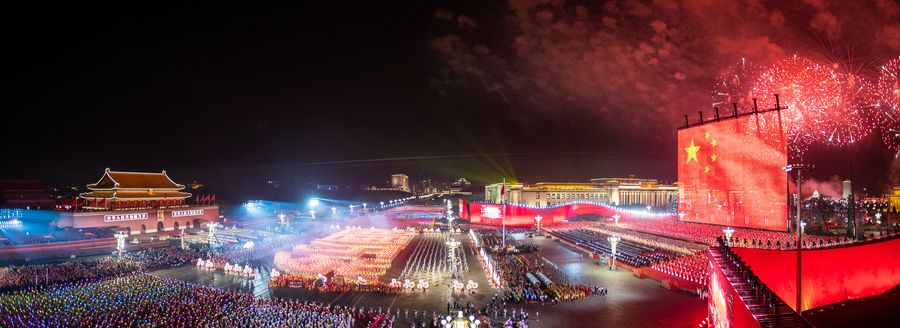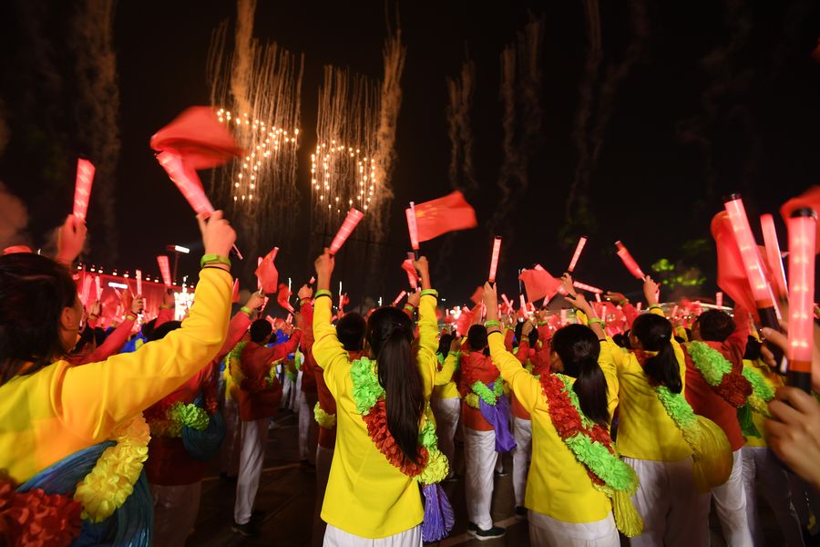 People perform during a grand evening gala at Tian'anmen Square to celebrate the 70th anniversary of the founding of the People's Republic of China (PRC), in Beijing, capital of China, Oct. 1, 2019. (Xinhua/Liu Bin)