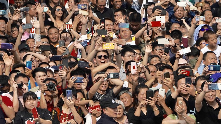 People watch a mass pageantry celebrating the 70th founding anniversary of the People's Republic of China (PRC) in Beijing, capital of China, Oct. 1, 2019. (Xinhua/Li Bo)