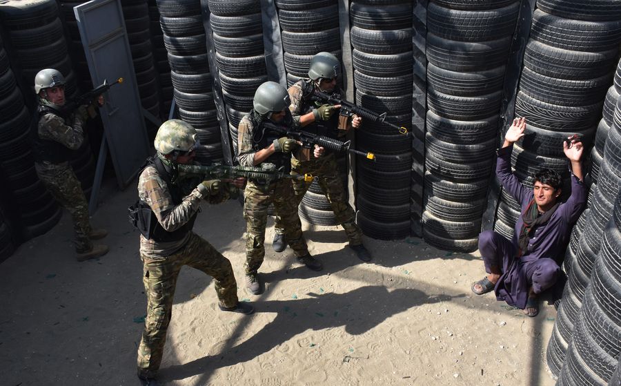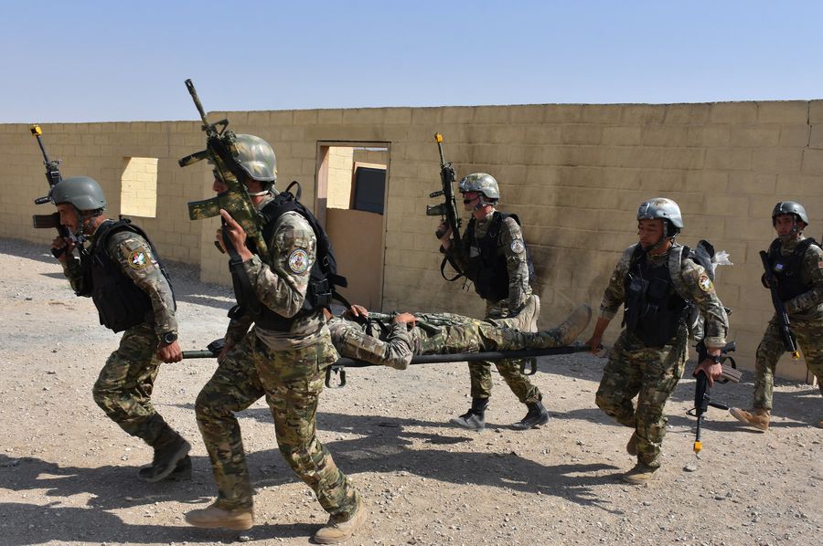 Afghan police officers take part in a military training in northern Balkh province of Afghanistan, Oct. 1, 2019. (Photo by Kawa Basharat/Xinhua)