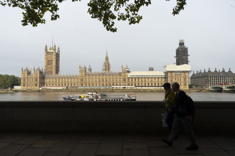 Photo taken on Oct. 3, 2019 shows the Houses of Parliament in London, Britain. British Prime Minister Boris Johnson urged politicians in the House of Commons Thursday to back the new proposals he has submitted to Brussels to pave the way for Britain to leave the European Union on Oct. 31. (Photo by Ray Tang/Xinhua)
