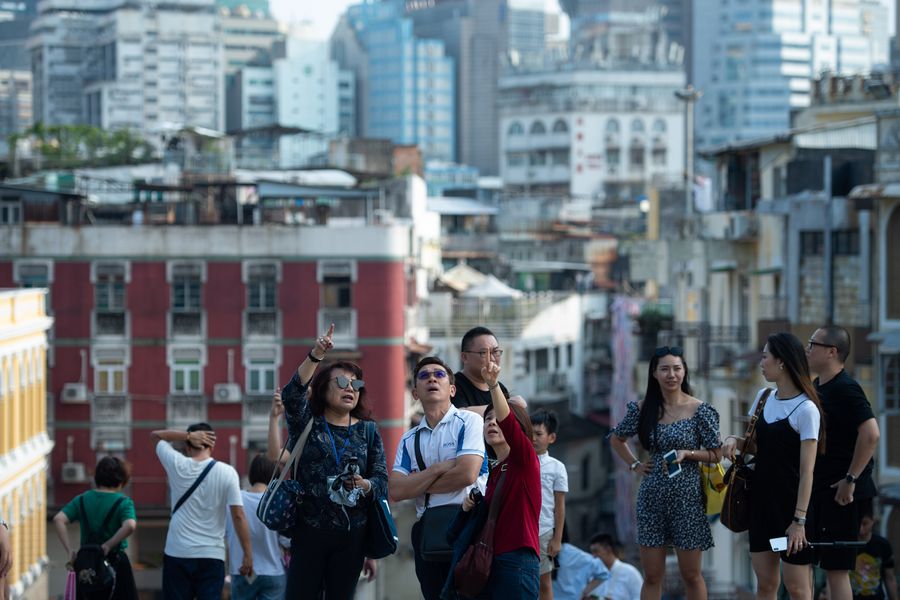 People tour a street in Macao Special Administrative Region, south China, Oct. 2, 2019. (Xinhua/Cheong Kam Ka)