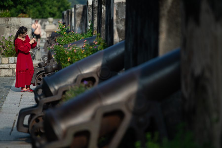 A tourist takes photos at Mount Fortress in south China's Macao Special Administrative Region, on Oct 8, 2019. (Xinhua/Cheong Kam Ka)