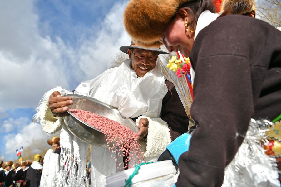 Residents attend a spring plowing ceremony in Shannan City, southwest China's Tibet Autonomous Region, March 16, 2019. (Xinhua/Li Xin)
