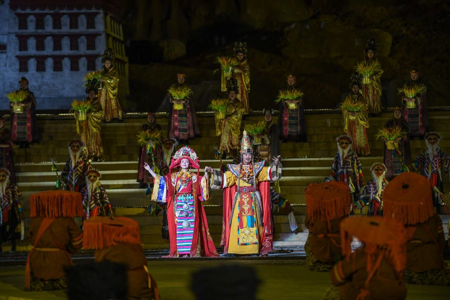 Photo taken on June 27, 2019 shows a scene of an epic drama "Princess Wencheng" in Lhasa. (Xinhua/Jigme Dorje)