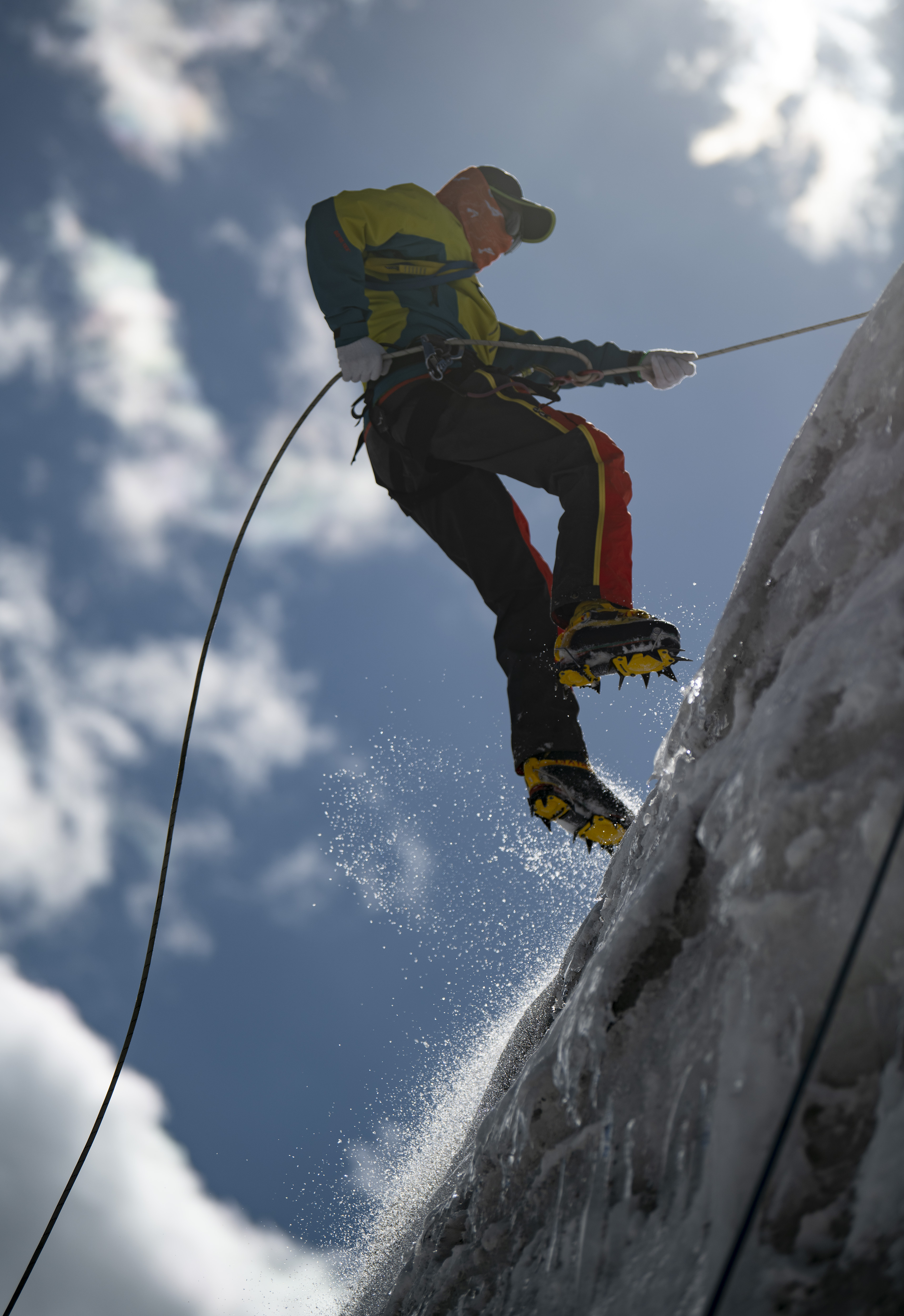 A climber participates in an exercise in Damxung County of Lhasa, capital of southwest China's Tibet Autonomous Region. (Xinhua/Purbu Zhaxi)