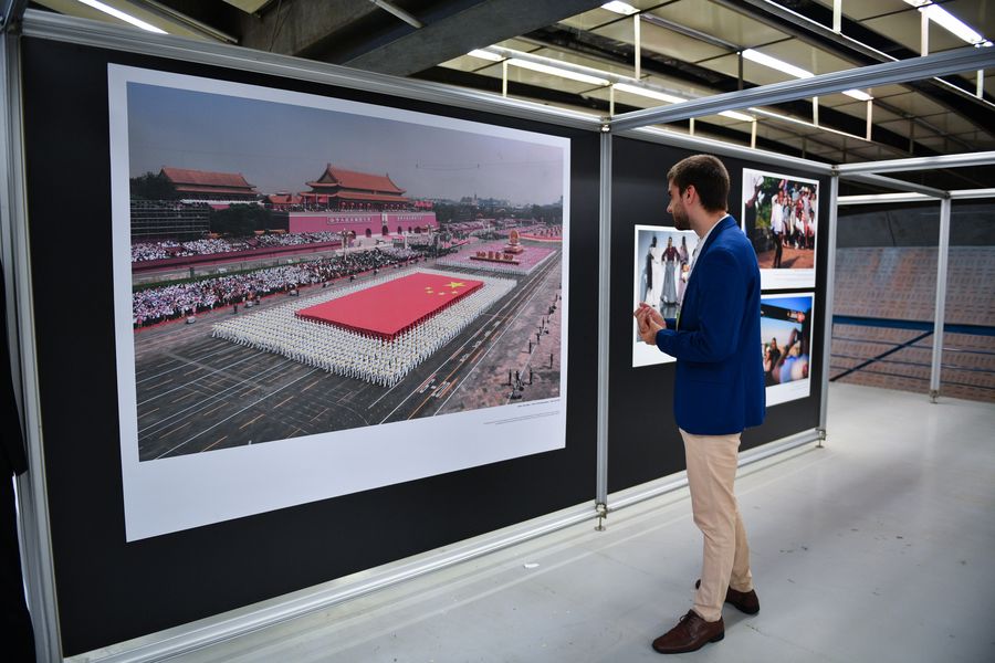 A visitor views photos during the third edition of the BRICS Media Joint Photo Exhibition in Sao Paulo, Brazil, Oct. 30, 2019. (Xinhua/Xin Yuewei)