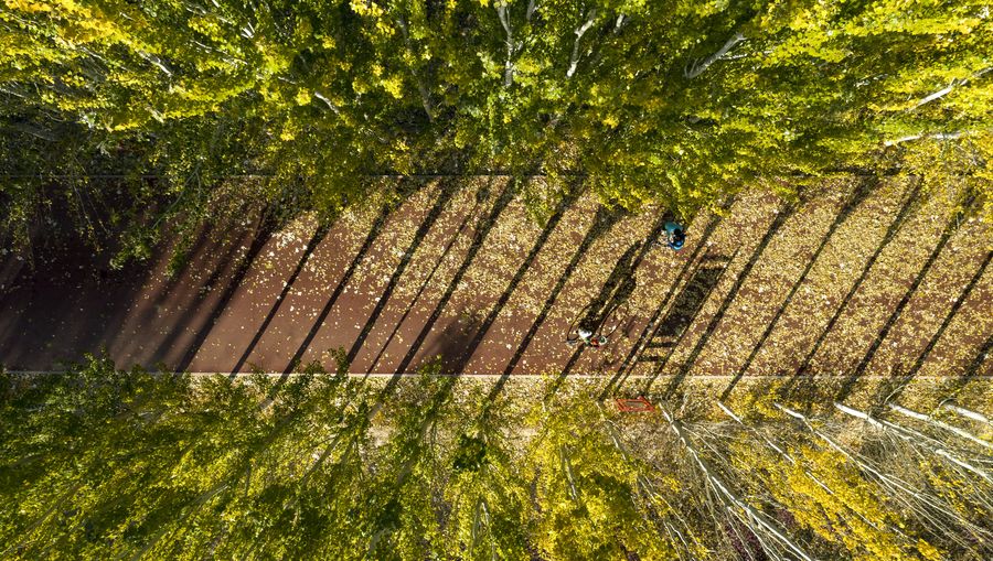 Aerial photo taken on Oct. 26, 2019 shows the autumn scenery of Phoenix Park in Yinchuan, capital of northwest China's Ningxia Hui Autonomous Region. (Xinhua/Feng Kaihua)