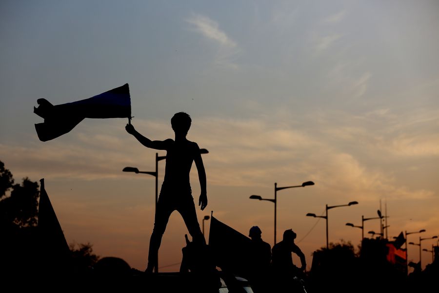 A protester waves flag in Baghdad, Iraq, on Nov. 5, 2019. (Xinhua/Khalil Dawood)
