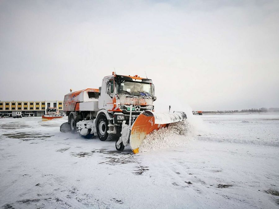 A snowplow is cleaning the runway at the Harbin Taiping International Airport, northeast China's Heilongjiang Province, Nov. 18, 2019. (Xinhua/Wang Junbao)