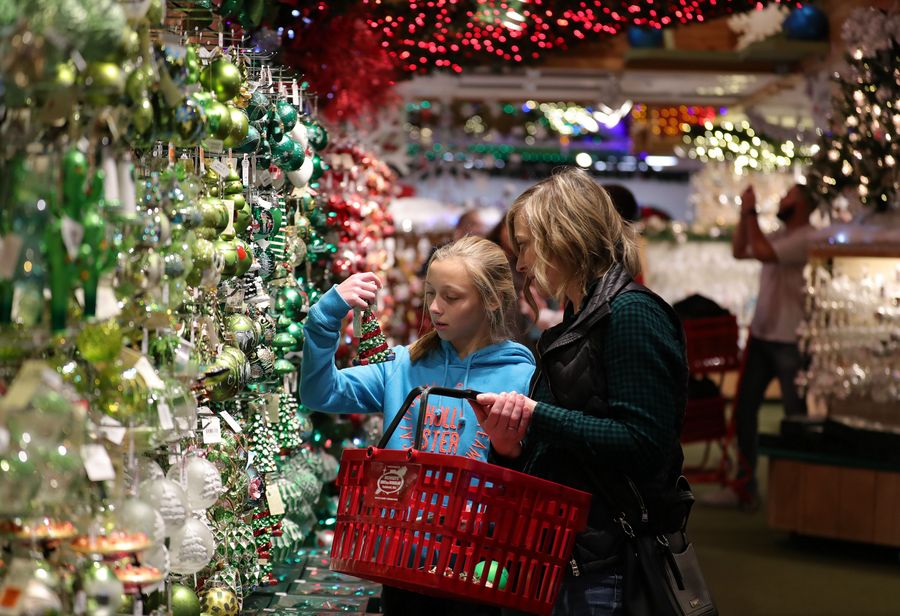 Customers shop at Bronner's Christmas Wonderland in Frankenmuth of Michigan state, the United States, Nov. 16, 2019. (Xinhua/Wang Ping)