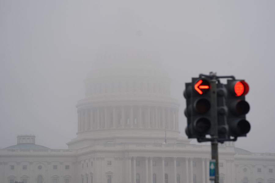 The Capitol Hill is shrouded in fog in Washington D.C., the United States, on Dec. 17, 2019. (Xinhua/Liu Jie)