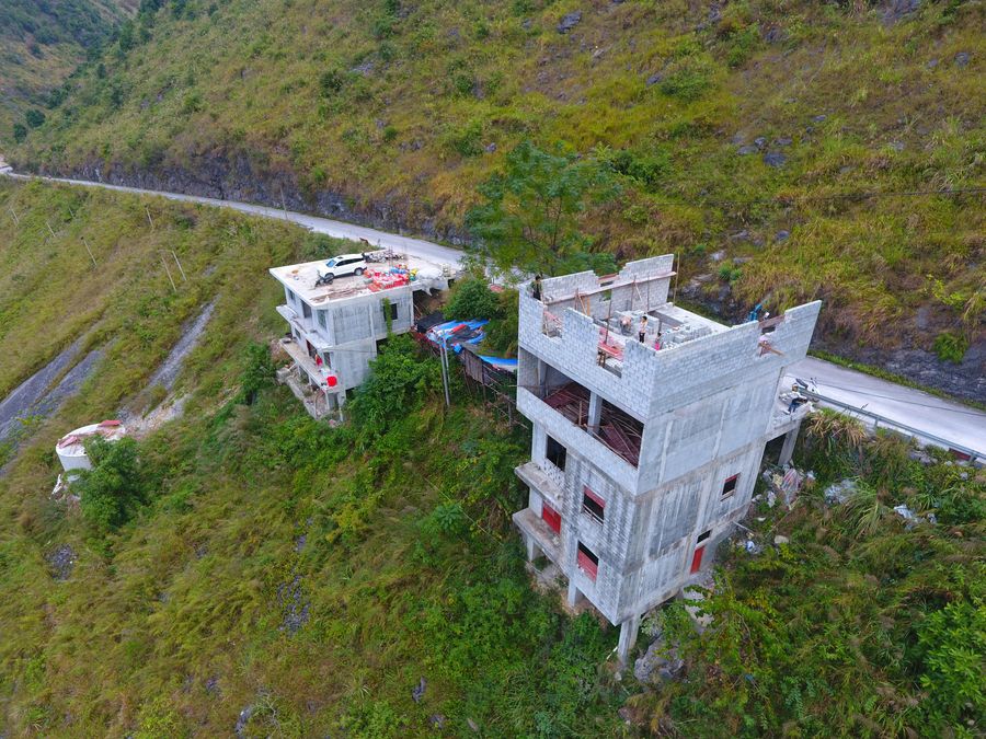 Newly built houses of relocated villagers in Nonghe Village in Dahua Yao Autonomous County, south China's Guangxi Zhuang Autonomous Region, Nov. 14, 2019. (Xinhua/Huang Xiaobang)