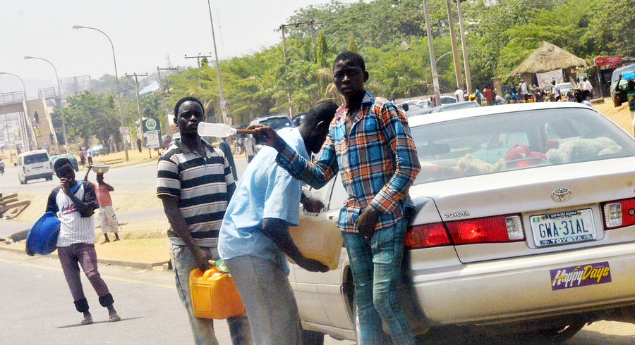 Hawkers were selling fuel on the streets of Abuja, capital of Nigeria. (Xinhua/Olatunji Obasa)