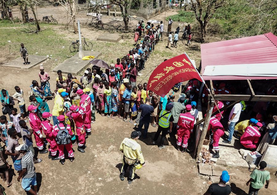 Members of Chinese rescue team work in Lamago Village, 90 km from Beira, Mozambique, March 26, 2019. A Chinese rescue team went to Lamago Village to carry out disaster relief work on Tuesday. (Xinhua/Zhang Yu)