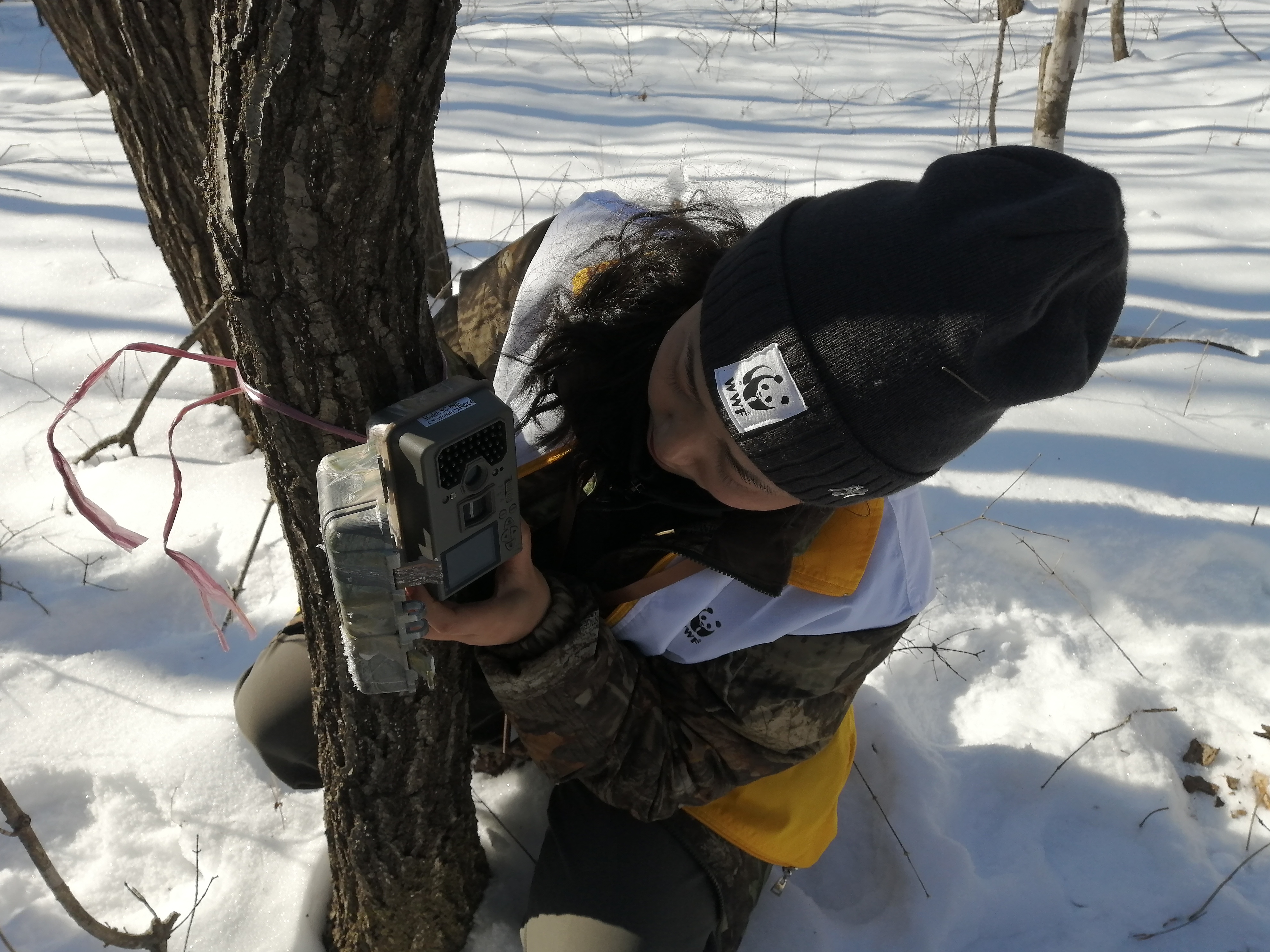 A competitor installs an infrared camera in the Northeast Tiger and Leopard National Park in Hunchun, northeast China's Jilin Province, Jan. 14, 2020. (Xinhua/Zhang Jian)
