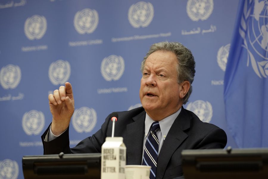 File photo shows David Beasley, Executive Director of the World Food Programme (WFP), speaks to journalists during a press briefing on the launch of "The State of Food Security and Nutrition in the World 2019" report, at the UN headquarters in New York, July 15, 2019. (Xinhua/Li Muzi)