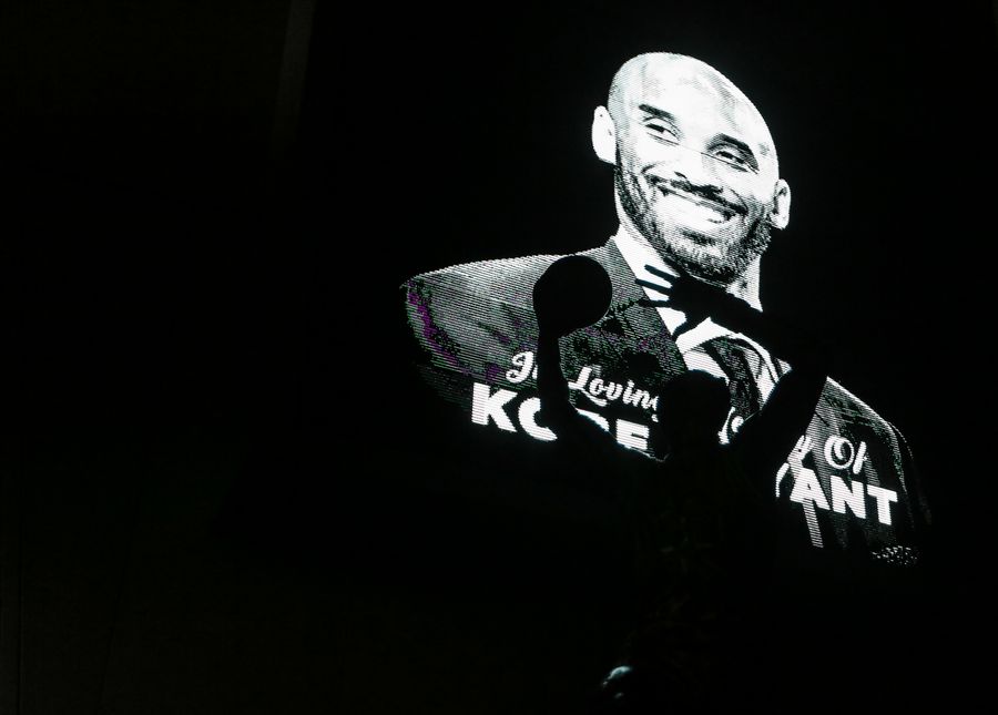 Kobe Bryant's portrait is displayed outside the Staples Center to pay respects to Kobe Bryant, in Los Angeles, California, the United States, Jan. 26, 2020. (Xinhua/Li Ying)