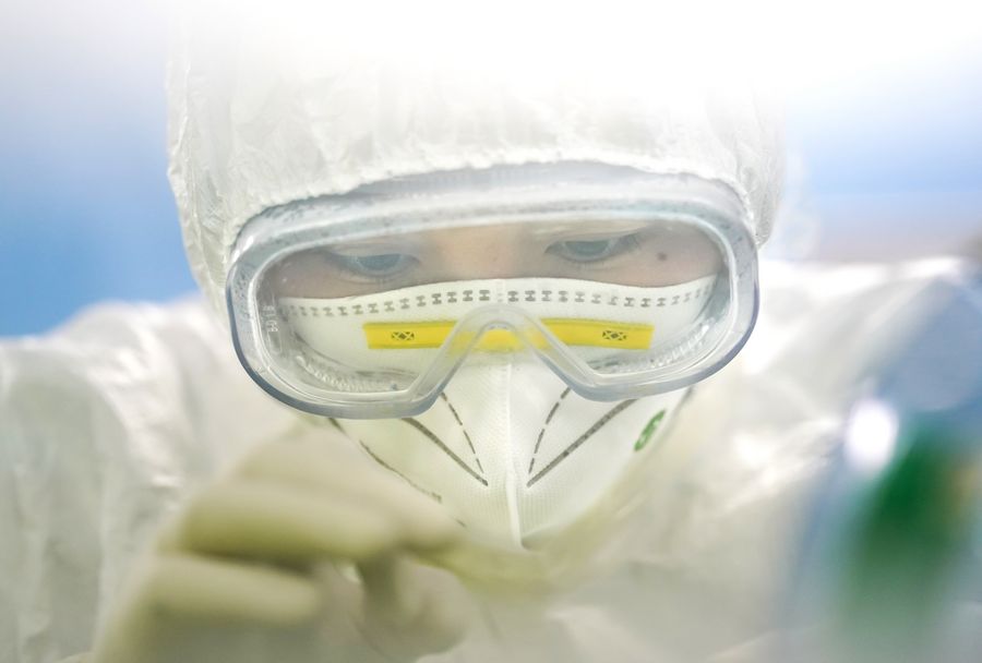 A staff member works in a laboratory in Wuhan, central China's Hubei Province, Feb. 13, 2020. (Xinhua/Cheng Min)