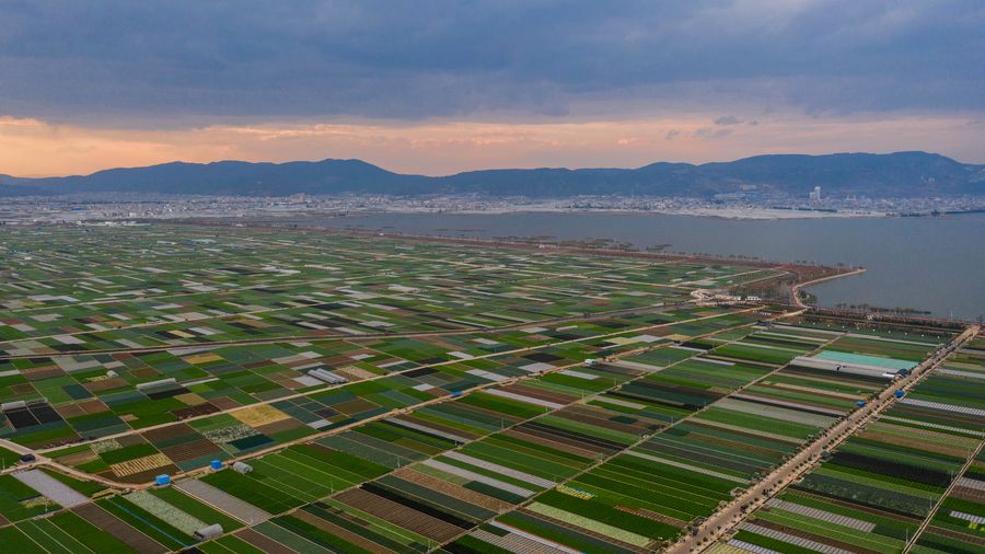 Aerial photo taken on March 3, 2020 shows the spring scenery of fields in Tonghai County, Yuxi City, southwest China's Yunnan Province. (Xinhua/Hu Chao)