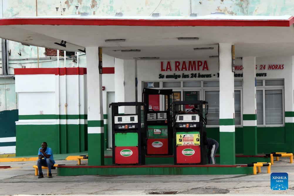Photo taken on March 17, 2026 shows an out-of-service gas station in Havana, Cuba. Cuba's national power grid suffered a total blackout on Monday, and the process of restoring electricity is currently underway, according to the Electric Union of Cuba. (Photo by Joaquin Hernandez/Xinhua)
