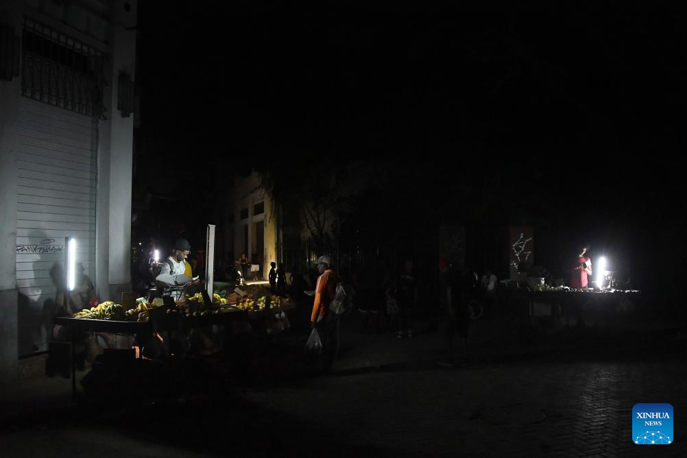 Vendors sell goods during a national blackout in Havana, Cuba, on March 16, 2026. Cuba's national power grid suffered a total blackout on Monday, and the process of restoring electricity is currently underway, according to the Electric Union of Cuba. (Photo by Joaquin Hernandez/Xinhua)