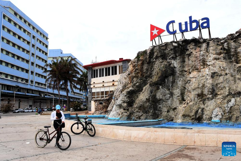 A woman travels by bicycle in Havana, Cuba, on March 17, 2026. Cuba's national power grid suffered a total blackout on Monday, and the process of restoring electricity is currently underway, according to the Electric Union of Cuba. (Photo by Joaquin Hernandez/Xinhua)