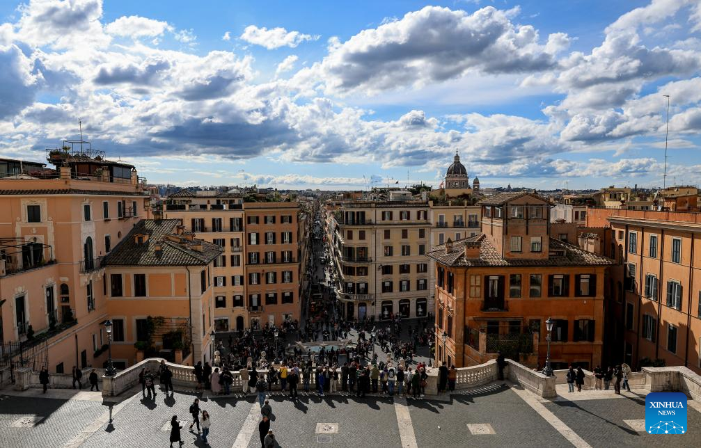 People enjoy leisure time at Spanish Steps in Rome, Italy, March 18, 2026. (Xinhua/Wang Kaiyan)