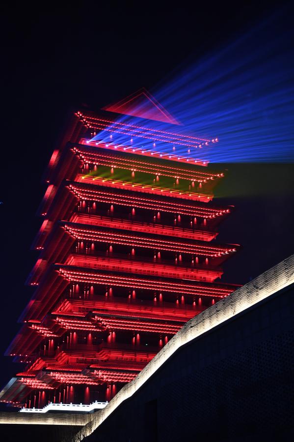元旦期間,位于甘肅省蘭州市七里河區(qū)的蘭州黃河樓景區(qū)上演《大有蘭州》光影秀,表演分為“源之大河”“金之大城”“民之大韻”“蘭之大州”四個(gè)主題篇章,讓游客在黃河之濱感悟黃河文化。