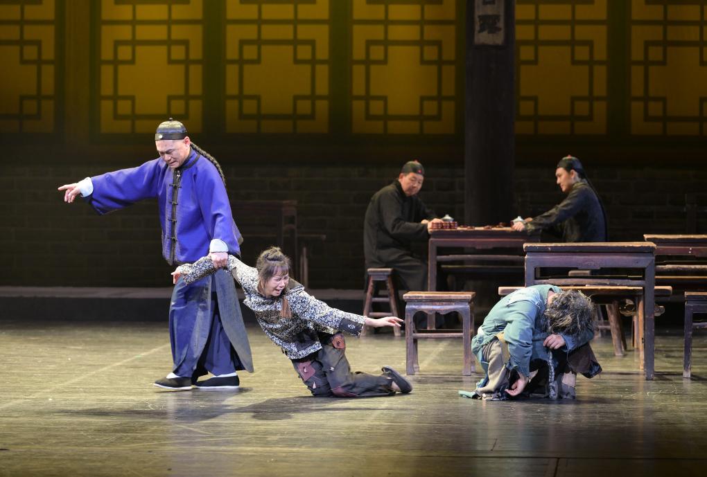 3月14日,演员在老舍经典话剧《茶馆》专属版中演出。新华社记者 李贺 摄