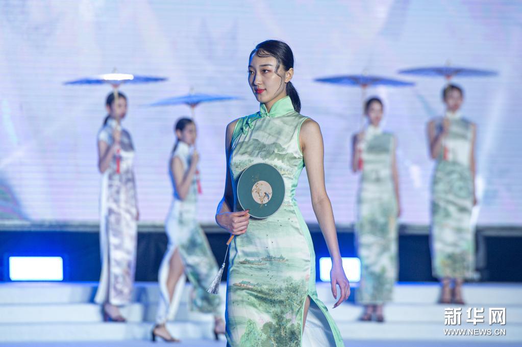 6月23日,模特在杭州亞運服飾秀上展示服裝。新華社記者 江漢 攝