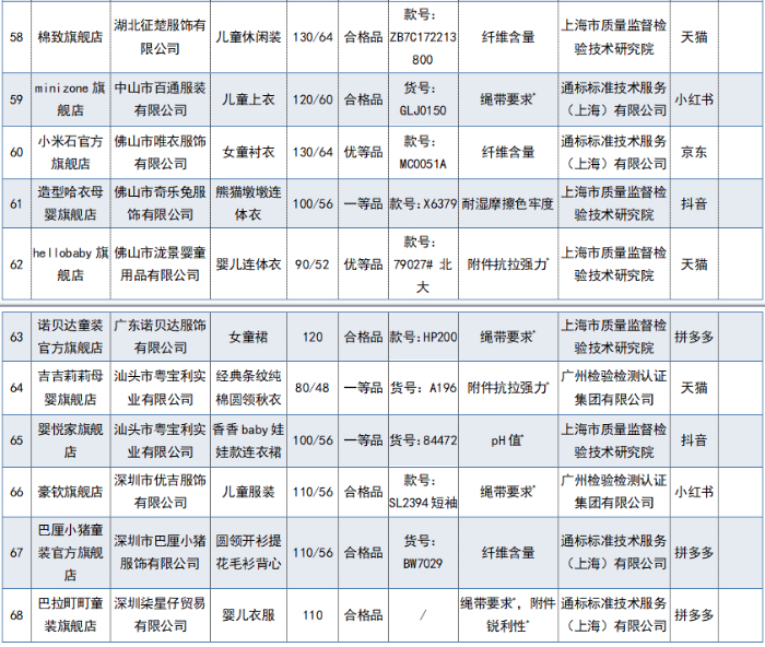当心!68批次网售婴童服装不合格
