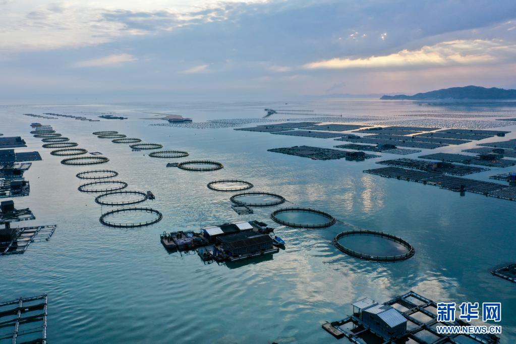福建省東山縣陳城鎮(zhèn)海上水產養(yǎng)殖區(qū)(2020年3月26日攝,無人機照片)。東山縣是全國水產品加工出口大縣,2019年全縣水產品總產量44萬噸,其中海水養(yǎng)殖產量27.6萬噸。