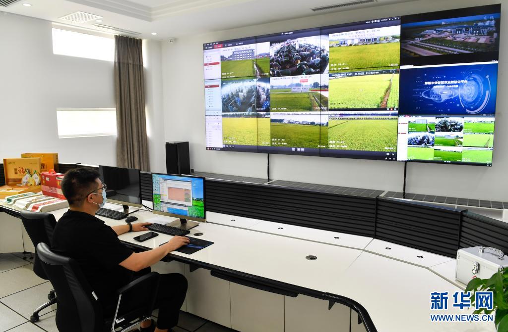 在吉林市孤店子鎮東福米業現代農業信息化監視指控中心,工作人員通過監控系統查看稻田情況(2020年8月13日攝)。近年來,吉林省吉林市大力發展“智慧農業”,以新技術、新模式、新業態為抓手,在希望的田野上播撒“科技種子”,讓農民從“會”種地到“慧”種地,保障糧食安全,助力鄉村振興。
