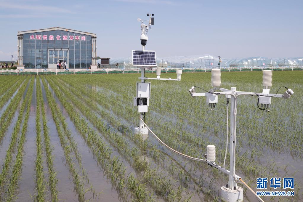 黑龍江省富錦市東北水田現代農機專業合作社稻田里的專業設備(2020年6月12日攝)。