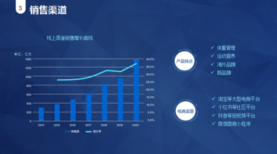 隨著產品形態和需求的變化,消費者對保健食品的了解和獲取渠道也發生了改變。目前,線上銷售渠道逐漸升溫,淘寶等大型電商平臺、小紅書等社區平臺、抖音等短視頻平臺、微信微商小程序等成為主要的電商渠道,抖音短視頻和Keep成為大家獲取保健食品信息的主要方式。