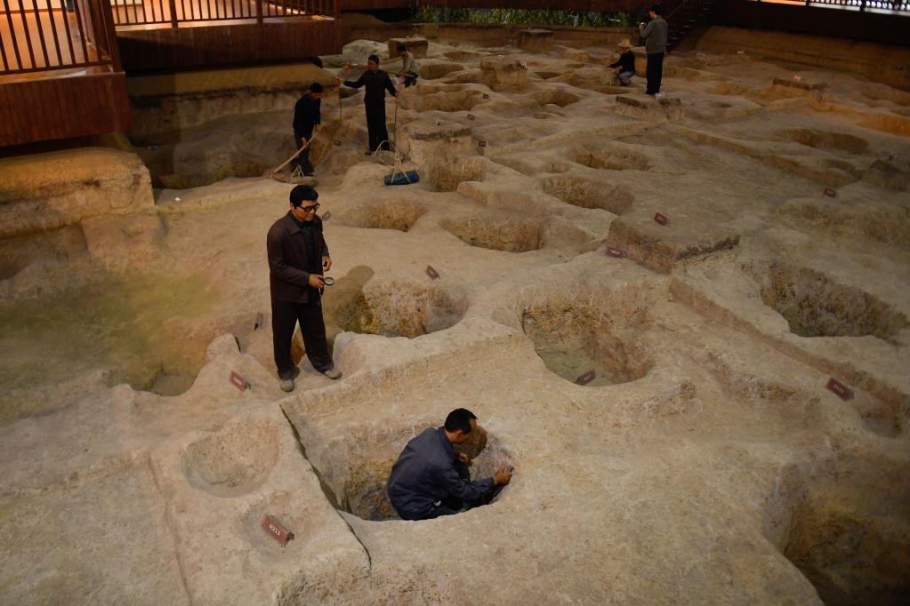 這是上山考古遺址公園發掘原址上的考古情景再現(5月12日攝)。新華社記者 黃宗治 攝