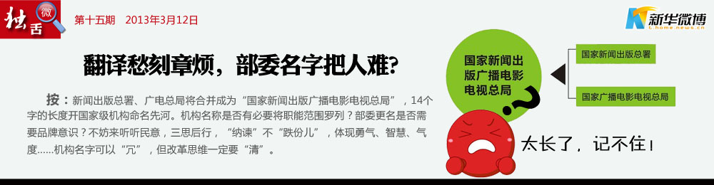 @霸氣外漏:【交通部也改了吧!】建議全稱為“國家新聞出版廣播電影電視微博微信彩信總管理局”,交通部應(yīng)該為“國家汽車火車飛機輪船摩托自行車部” 。