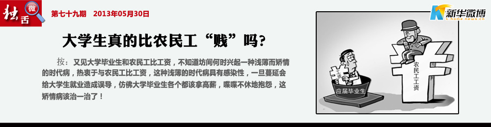 【新名詞:大學(xué)生農(nóng)民工】 他們出身農(nóng)村、考上大學(xué)進(jìn)入城市,畢業(yè)后與進(jìn)城打工的父兄匯流,又重新站在了同一條起跑線(xiàn)上;他們與新生代農(nóng)民工職業(yè)混同,工資相差無(wú)幾,生活境遇同樣是在城鄉(xiāng)之間漂浮。對(duì)這樣一個(gè)近幾年涌現(xiàn)的年輕人群體,我們稱(chēng)之為“大學(xué)生農(nóng)民工”。